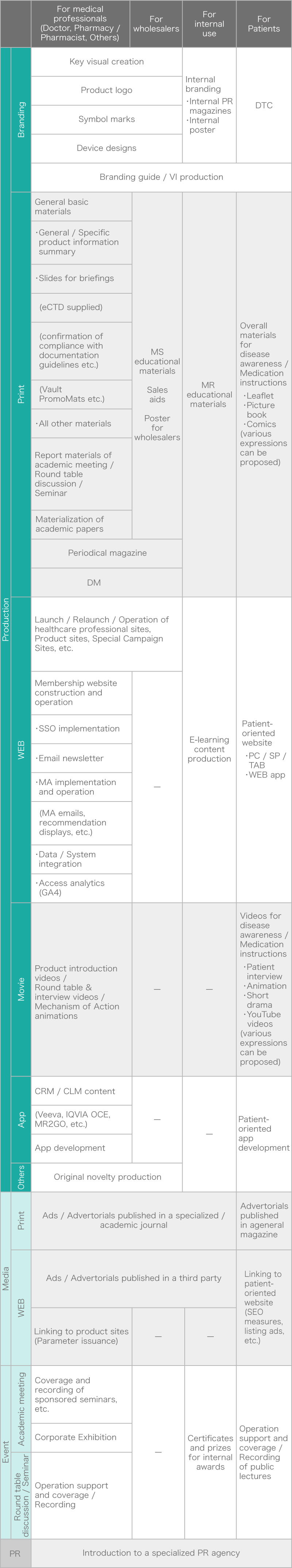 At launch, we can handle all kinds of materials, from the basic materials based on CTD to academic materials, visual materials, etc. We can also handle all related tasks, such as obtaining permission to reproduce, requesting supervision, and making honorarium payments. -
